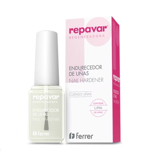 Repavar Endurecedor de Uñas es un esmalte que forma una película protectora, fortalece y regenera las uñas débiles y quebradizas, aumentando su dureza y flexibilidad. Endurece las uñas con tendencia a presentar roturas, fisuras y deshojamientos.