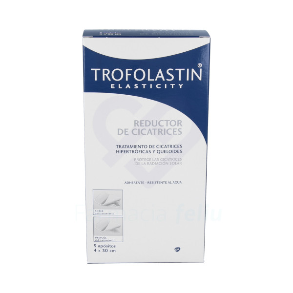 Una cicatriz es el resultado natural del proceso de curación de una herida, y una herida no se convierte en cicatriz hasta que no está totalmente curada, por tanto Trofolastín Reductor de Cicatrices puede utilizarse para la reducción de cicatrices hipertróficas recientes, o antiguas, o queloides, utilizando el apósito durante un periodo de 8 a 10 semanas, aunque en algún caso se observa mejoría a partir de la cuarta semana.