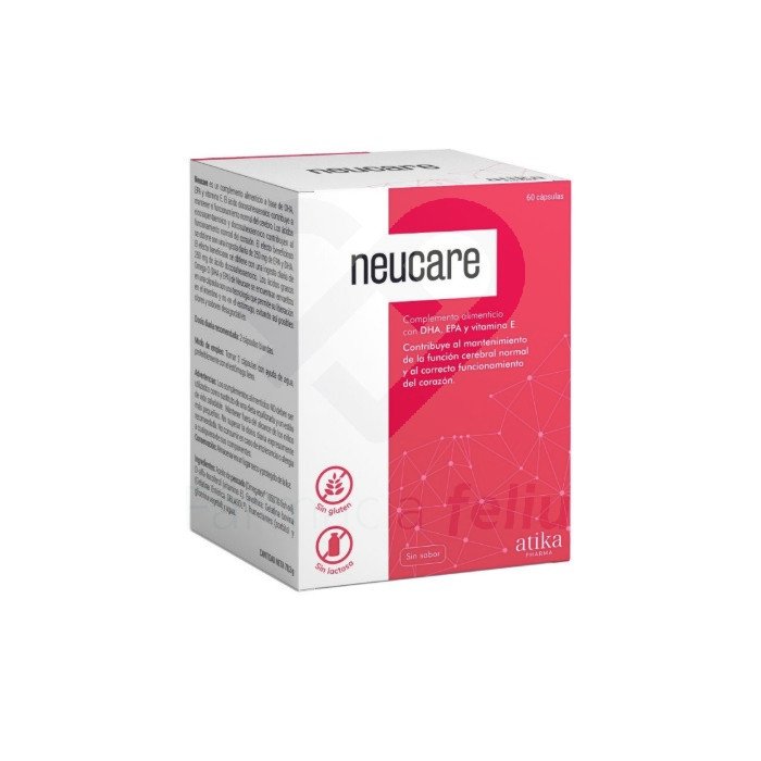 Neucare ayuda a satisfacer las necesidades nutricionales de vitamina E y ácidos grasos Omega-3 (DHA y EPA) requeridas por nuestro organismo en caso de una ingesta insuficiente en la dieta o de un aumento en las necesidades de estos. El efecto beneficioso se obtiene con una ingesta diaria de 250 mg de DHA.