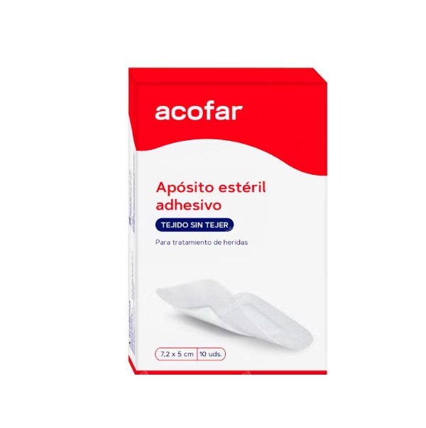 Acofar Apósito Adhesivo Estéril para la protección segura de la herida, hecho de una suave tela no tejida fabricado como material de apoyo, con un apósito de almohadilla no adherente; altamente absorbente con un buen efecto de “acolchado”; agradable con la piel a través de un adhesivo de caucho sintético hipoalergénico.