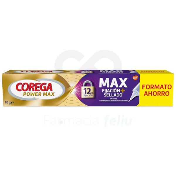 Corega Max Fijación+Sellado es una crema fijadora para prótesis dentales, está formulada para proporcionar una fijación duradera durante todo el día y aportar comodidad a las encías.