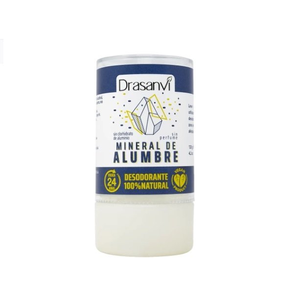 Drasanvi Desodorante de Alumbre , la piedra de alumbre es un mineral que actúa de manera muy eficaz como desodorante. En lugar de enmascarar el olor con perfume, destruye las bacterias que descomponen el sudor y causan el mal olor. Al erradicar el problema del mal olor, su efecto es duradero, dejándose sentir durante varias horas.