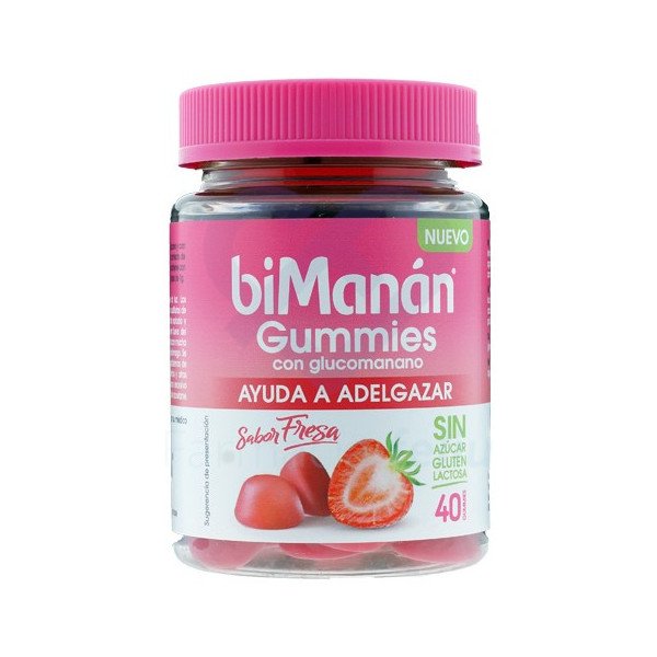 Bimanan Gummies Glucomanano Sabor Fresa es un complemento alimenticio en formato gominola, indicado para adultos, con una fibra saciante que ayuda a controlar el apetito y perder peso.