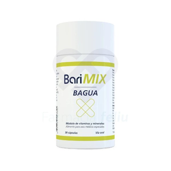 Barimix BAGUA es un complemento alimenticio en cápsulas, para uso médico especial, que proporciona los minerales y vitaminas necesarios después de una cirugía bariátrica, específicamente para el bypass gástrico de una sola anastomosis.