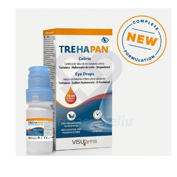 TREHAPAN® colirio no contiene ni conservantes ni fosfatos, es compatible con lentes de contacto y viene en un envase 10 ml fácil de utilizar. La dosis recomendada es de 1 gota en el saco conjuntival 3 veces al día.